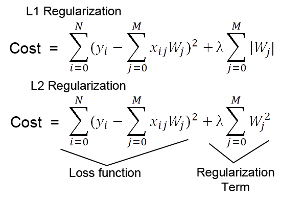 1.L1 : Lasso Regression 이라고 한다. 비용 함수의 정규항의 가중치(Wj)에 절대 값을 추가 한다.